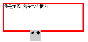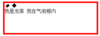 <div class="longen"> <div class="arrow"> <em>◆</em> <span>◆</span> </div> 我是龙恩 我在气泡框内</div>
