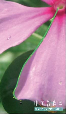 2. 用钢笔工具(P)是很理想的因为它能快速且容易地用手在图片的外形轮廓上点击和拖动而绘制出花辩的轮廓。