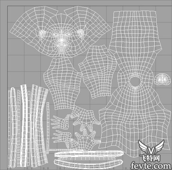 在制作高模前,我们最好将低模分好UV,当然也可以雕完再分,但是很麻烦。分UV时,我一般都是使用unford3d,分好以后导入到Maya中重新排列它们的大小位置,不外乎都是重要的部位占的地方大,不重要的部位站的地方小。