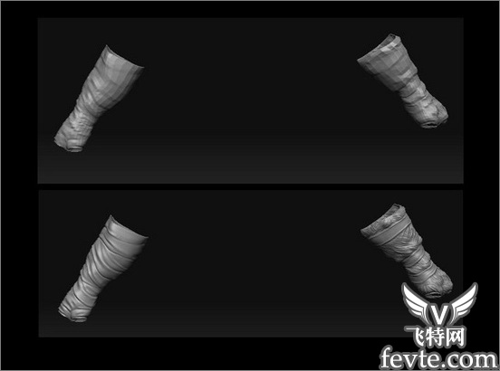 将分好UV、命好名字的低模,依次导入到ZB中去制作高模,我们使用ZB的层subtool功能就可以将所有部件都导入到一个文件中去。首先,我们观察它的大型,那样就可以使用移动move笔刷来调整使我们不满意的地方。雕刻的时候最好就是依次渐进,不要一来就细分相当高的层级来雕刻,比如我在三级细分的时候刷出大致的肌肉形体,然后再细分到五级以上,仔细地调整他的肌肉块面。