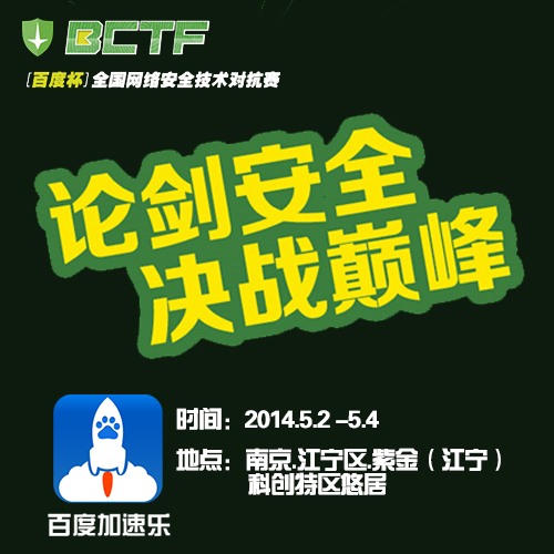 以上就是懦弱火最近收集整理的关于五一去哪玩 加速乐助威百度杯全国网络安全技术对抗决赛的全部内容,更多相关五一去哪玩内容请搜索靠谱客的其他文章。