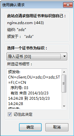 再次刷新网页,弹出“使用确认”点击确定,就实现了双向验证