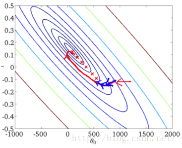 梯度下降法特点:越接近目标值,步长越小,下降速度越慢。