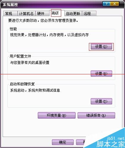 1、首先在桌面选择【我的电脑】然后右键选择属性。在跳出来的【系统 属性】中找到【高级】标签。如图所示。选择红色方框部分的【设置】按钮。