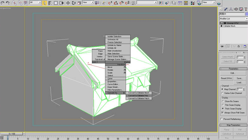 3、选择Parametes菜单里点击Edit按钮,打开UV编辑面板,检查一下看UV有没有重叠,UV不要有重叠。(图03)