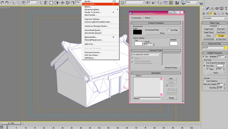 6、点击Rendering(渲染)菜单下的Environment(环境)选项,也可直接按键盘上的快捷键数字8键。(图06)