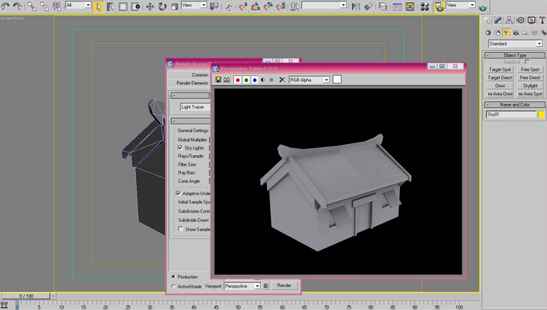 8、点击Rendering(渲染)菜单,选择Advanced Linghing(环境)选项下的Light Tracer。(图08)