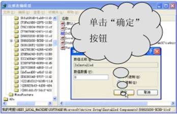 提示:在注册表中将“Islnstalled”键值的数值数据修改为“0”后,xp系统会认为未装InternetExplorer浏览器,因此可以顺利进行安装。