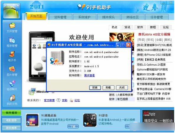 apk文件和sis一样,把android sdk编译的工程打包成一个安装程序文件,格式为apk。 APK文件其实是zip格式,但后缀名被修改为apk,通过UnZip解压后,可以看到Dex文件,Dex是DalvikVM executes的简称,即Android Dalvik执行程序,并非Java ME的字节码而是Dalvik字节码。Android在运行一个程序时首先需要UnZip,然后类似Symbian那样直接,和Windows Mobile中的PE文件有区别。