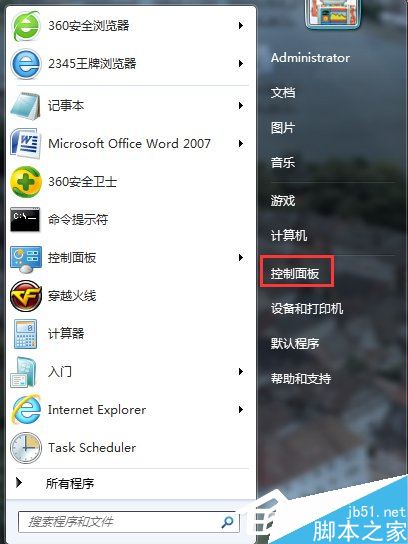 打开控制面板,方法是点击屏幕左下角的“开始”→“控制面板”即可。