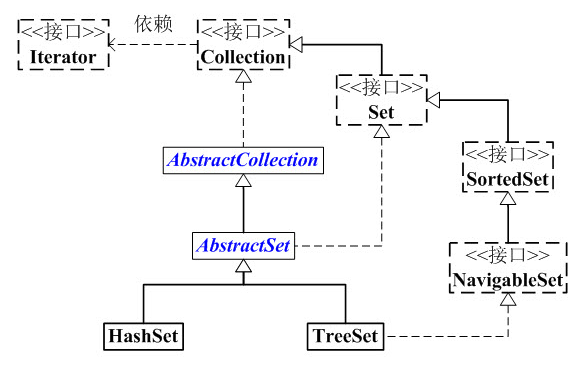 (3)HashSet和TreeSet是Set的两个实现类。HashSet依赖于HashMap,实际上是通过HashMap来实现的,HashSet中的元素是无序的。TreeSet依赖于TreeMap,实际上是通过TreeMap实现的,TreeSet中的元素是有序的。