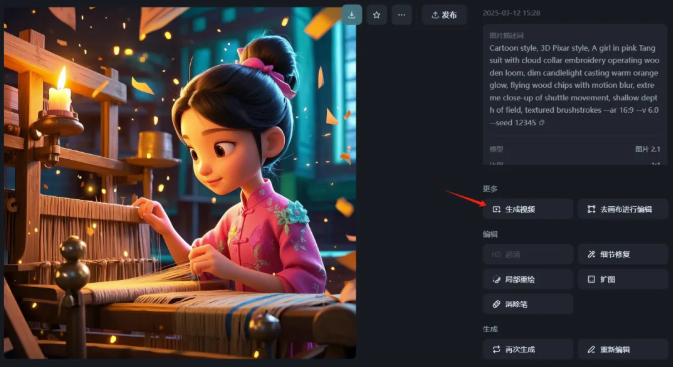 有了AI绘制的分镜图,接下来就是让它动起来!即梦本身支持 图生视频,非常适合这种古风视频。