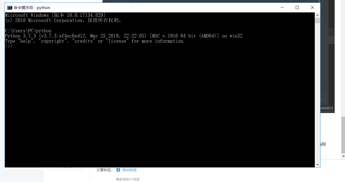 cmd打开命令行,检查输入 python 检查python版本是否正确安装,如果没有安装好,访问python官网下载最新版的python