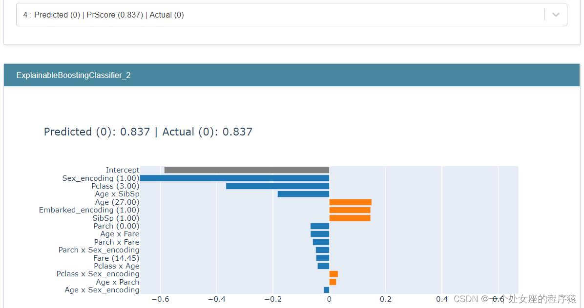 以上就是忧伤绿草最近收集整理的关于ML之interpret:基于titanic泰坦尼克是否获救二分类预测数据集利用interpret实现EBC模型可解释性之全局解释/局部解释案例基于titanic泰坦尼克是否获救二分类预测数据集利用interpret实现EBC模型可解释性之全局解释/局部解释案例# 1、定义数据集# 2、数据预处理# 3、模型建立与训练的全部内容,更多相关ML之interpret:基于titanic泰坦尼克是否获救二分类预测数据集利用interpret实现EBC模型可解释性之全局解释/局部解释案例基于titanic泰坦尼克是否获救二分类预测数据集利用interpret实现EBC模型可解释性之全局解释/局部解释案例#内容请搜索靠谱客的其他文章。