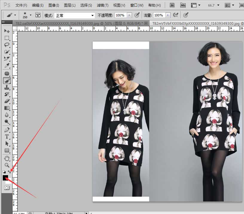 5、第五步,我们要调整前景色颜色,让前景色是黑色。黑色就是不显示的意思,白色就是显示。然后在我们复制过来的图层上擦。