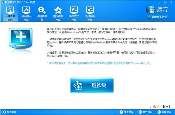3、魔方修复大师提供的一键修复系统功能,该功能可以帮助用户一键修复由病毒木马或者不当软件操作引起的系统功能故障。