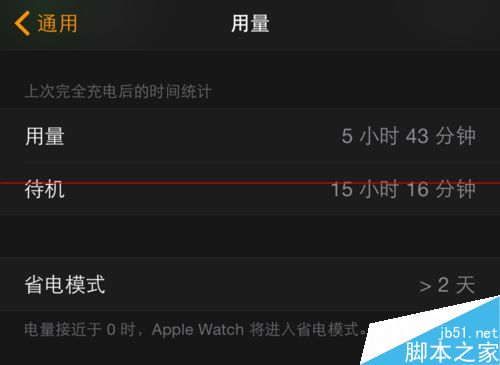 3、接下来在通用中,请点击“用量”一栏,在这里面会包含手表的电池使用信息。