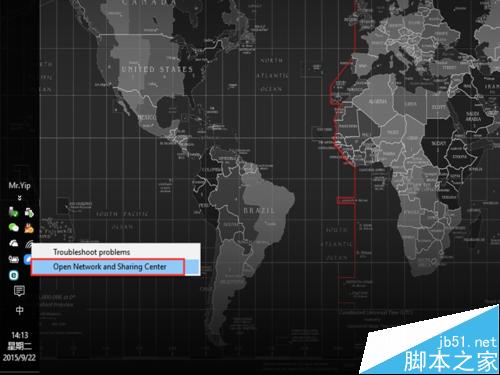 1、在无线网卡上右击,选择”打开网络共享中心“;