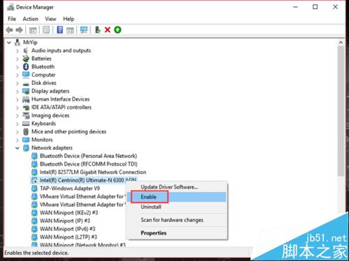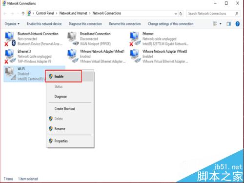 随后在无线网卡上右击选择“启用”。
