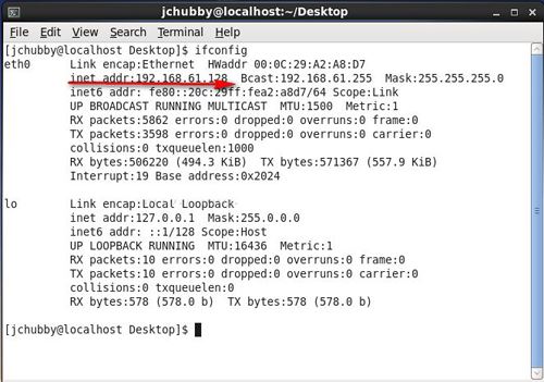1.进入linux系统,在终端输入ifconfig(注意,不是windows的ipconfig)