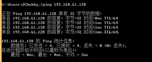 找到ip地址,可以在主机上ping一下,可以ping通就表示可以用