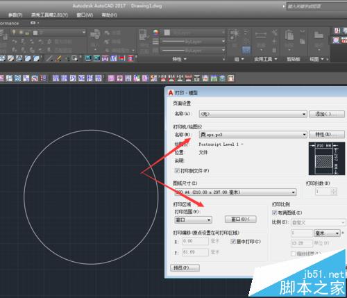 10、CAD工程师可以打开一张图纸,或自己随手绘制一张,然后选择刚添加的EPS打印机,用窗口选择图纸,然后点完成;