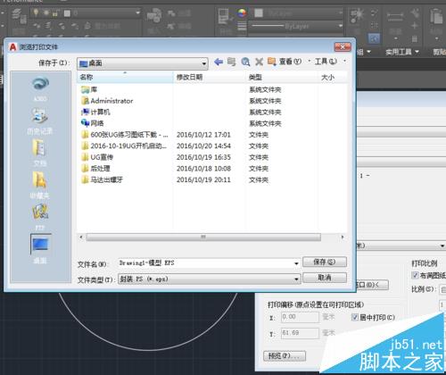 11、在弹出的窗口中,选择文件的保存路径,然后确定;到此用CAD打印机制作EPS图档完成,如果电脑上安装有PS,就可以用其来进行图片编辑操作了。