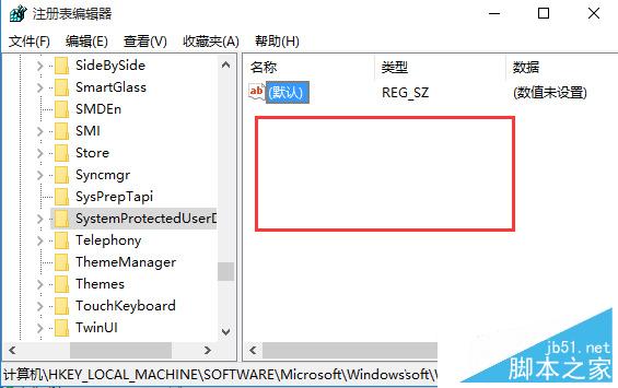 5、依次展开 HKEY_LOCAL_MACHINE\SOFTWARE\Microsoft\Windows\CurrentVersion\SystemProtectedUserData