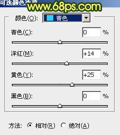 3、创建可选颜色调整图层,对黄、绿、青、中性、黑进行调整,参数设置如图9 - 13,确定后同上的方法创建剪切蒙版,效果如图14。这一步把暗部颜色调暗一点。