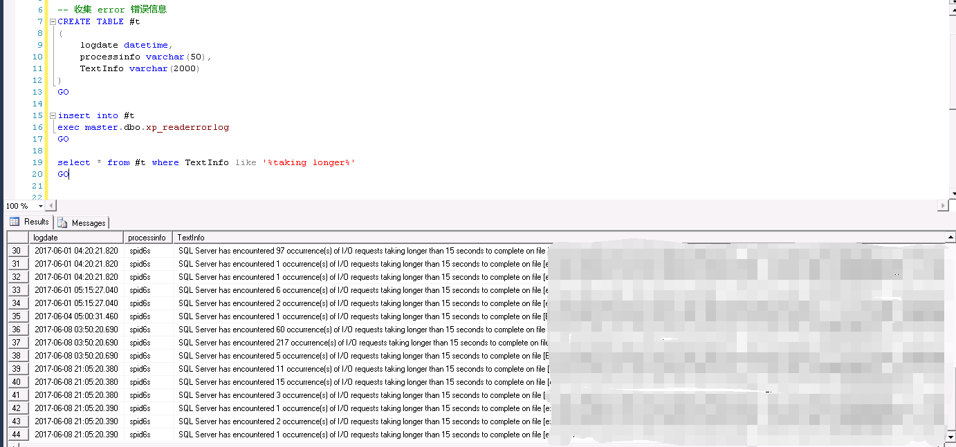 最近遇到一个SQL Server服务器响应极度缓慢,并且出现客户端请求报错的情况,在数据库中的errorlog中出现磁盘请求超过15s才完成的error消息。