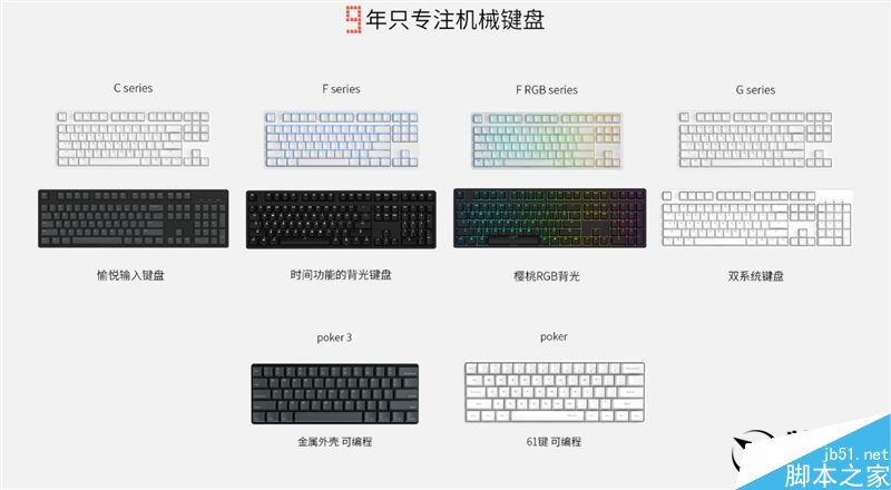 IKBC每年都会推出一个系列的重磅新品,2016年主打F系列时光机,首款带有倒计时功能的机械键盘,而且为了满足部分用户的信仰需求,还特别推出了带有全彩背光灯的F RGB系列。