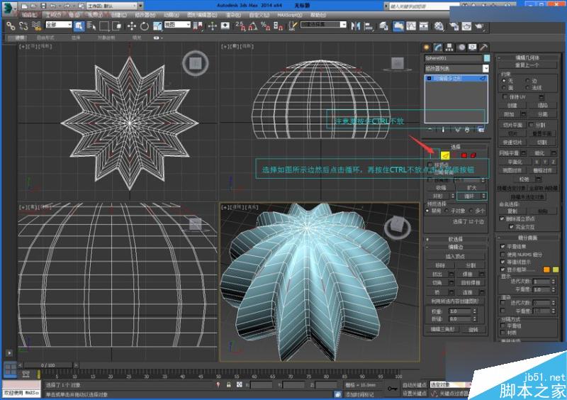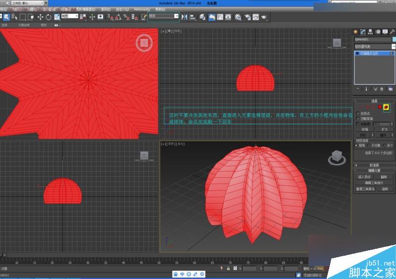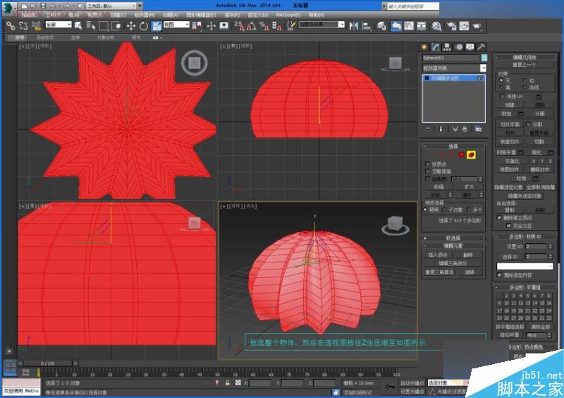 接着把这个球体转化为可编辑多边形并进入顶点层级。如图: