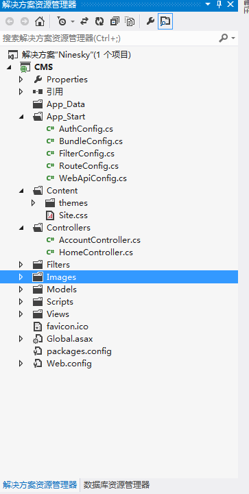 2、打开web.config 修改数据库连接为<add name="DefaultConnection" connectionString="Data Source=(LocalDb)\v11.0;Initial Catalog=NineskyCMS;Integrated Security=SSPI;AttachDBFilename=|DataDirectory|\NineskyCMS.mdf" providerName="System.Data.SqlClient" />