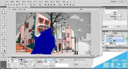 6、大家注意到了吗?上面我做的哪个蒙版图片模糊不清,那这是什么原因呢?原因就在于我们在运用钢笔工具画蒙版区域时画出来的区域自动填充成了蓝色。这个时候我们就需要把蓝色更改为白色,这样做出来的蒙版就清晰了。