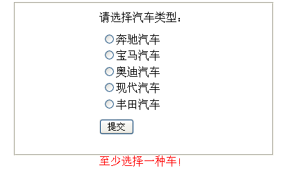 <asp:CustomValidator ID="ctvCar" runat="server" Display="Dynamic" ErrorMessage="至少选择一种车!"