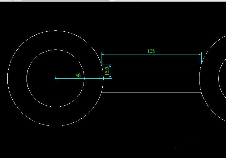 沿着步骤1圆心向右水平48mm,在垂直向上与大圆相交点为起点,水平向右画线,与另一个同心圆的大圆相交,然后镜像产生另外一条直线。