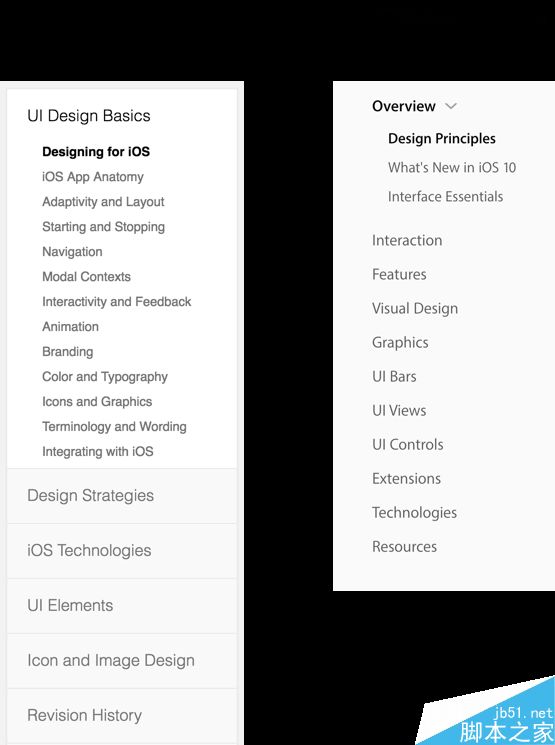 然后,我们再拿iOS 9 和 iOS 10 的HIG结构框架进行一下对比:
