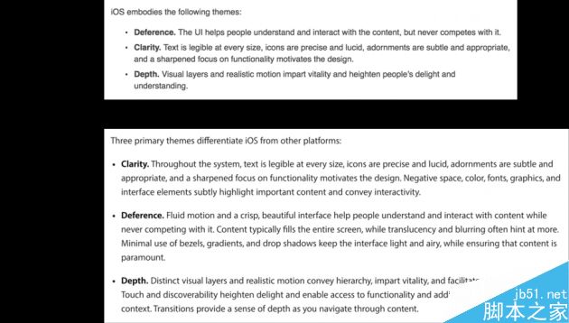 但是不知道大家有没有注意,其中有了一个非常细微的变化,就是万年老二的Clarity(清晰)原则,这次成了老大。具体原因也只有Apple的设计师知道了(貌似是来自于用户吐槽),但是就结果来说,「清晰」这一设计准则应当会是以后的设计趋势和重点