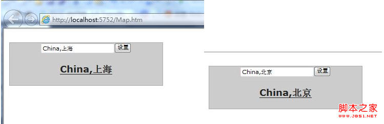<input id="Text1" type="text" value="China,上海"/><input id="Button1" type="button" value="设置" />