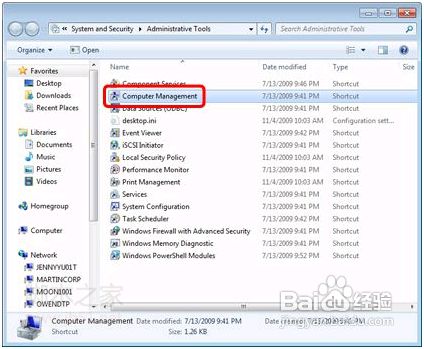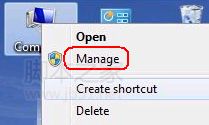 或直接在桌面“Computer”图标上右击,从弹出菜单中选择“Manage”项: