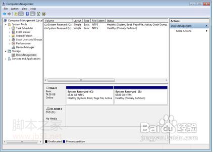 Win7中分区比较的容易,可直接对已存在的磁盘作一定的变更而不影响已经存在的数据。虽然英文系统中对于E文不好的咱操作还是有一定阻碍。