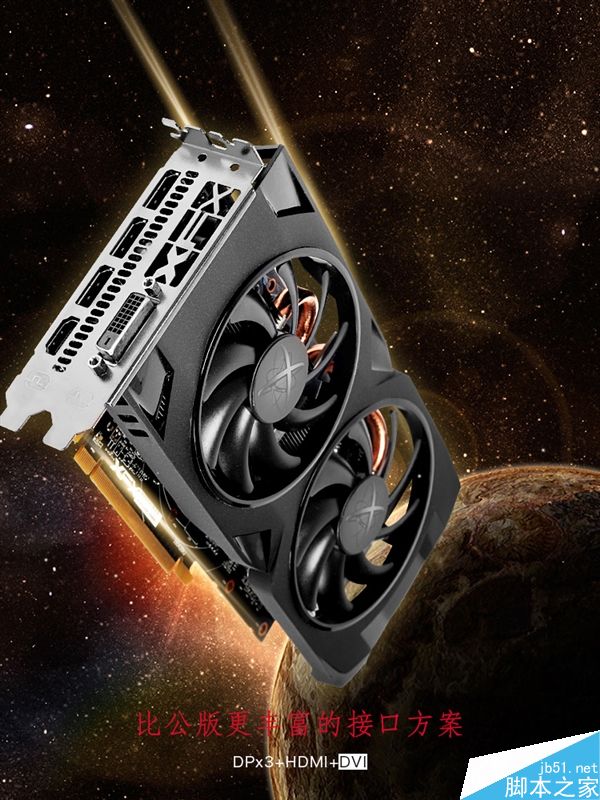 讯景这块RX 470D黑狼版的核心频率为1226MHz,4GB GDDR5显存频率提高到7GHz,提供四代酷魂散热系统(双风扇三热管)、阳极氧化铝金属背板、DVI/HDMI/3×DP输出接口、双BIOS。