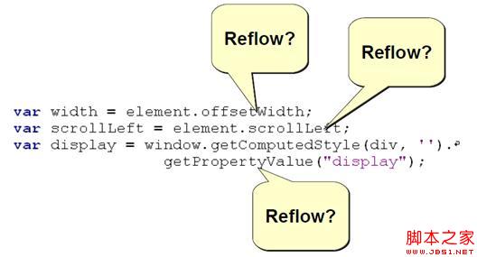 DOM 元素里面有一些特殊的测量属性的访问和方法的调用,也会触发 Reflow,比较典型的就是“offsetWidth”属性和“getComputedStyle”方法。