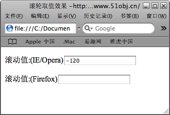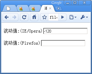 <p><label for="wheelDelta"> 滚动值:</label>(IE/Opera)<input type="text" id="wheelDelta" /></p>