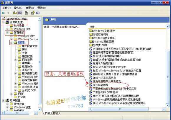 2.在弹出的组策略中,选择“计算机配置”——“管理模板”——双击“系统”。
