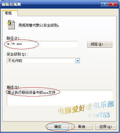 6. 在弹出的新路径规则的“路径”里,输入:m\*.exe