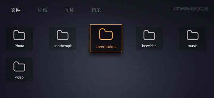 7、焦点在文件管理器模块上的时候按下遥控器OK键,进入文件管理器中并且选择文件一栏展示,这里会显示优盘中所有文件夹。
