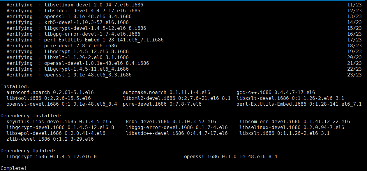 这里还漏了几个,如果报错了提示缺少了什么就yum补上。