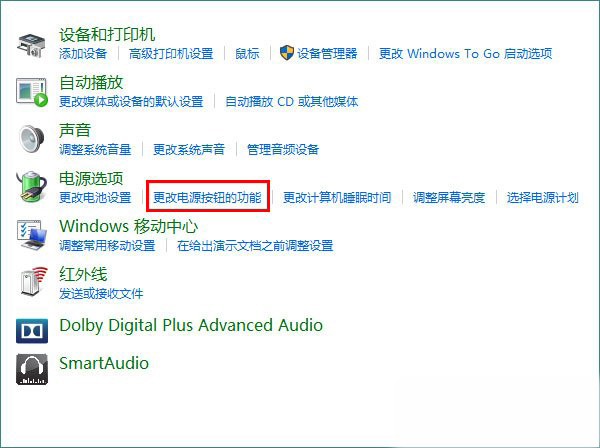 4、然后,点击进入“更改电源按钮的功能”。