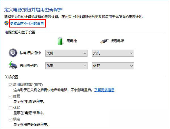 5、接着,点击“更改当前不可用的设置”。